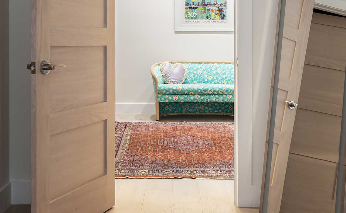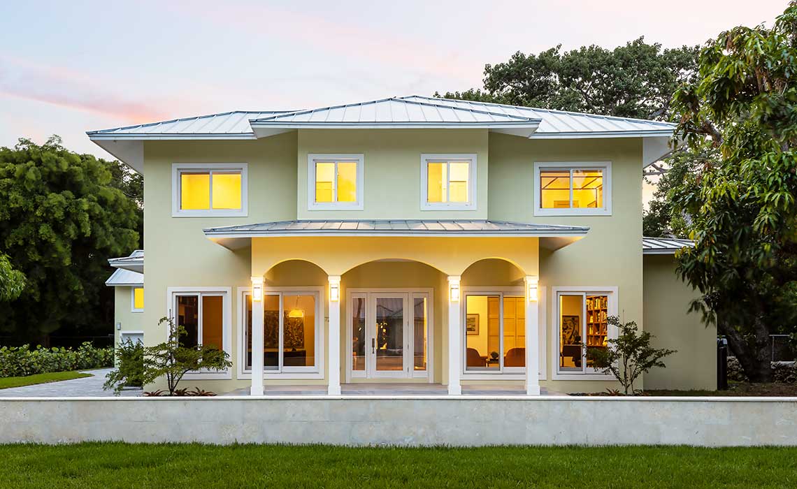 This new South Miami, Florida home was crafted in the Contemporary Key West style. The 2 story house of 3800 square feet features a grand hall - central hallway - on the ground that is pulling the view to the covered patio in the rear and the backyard.