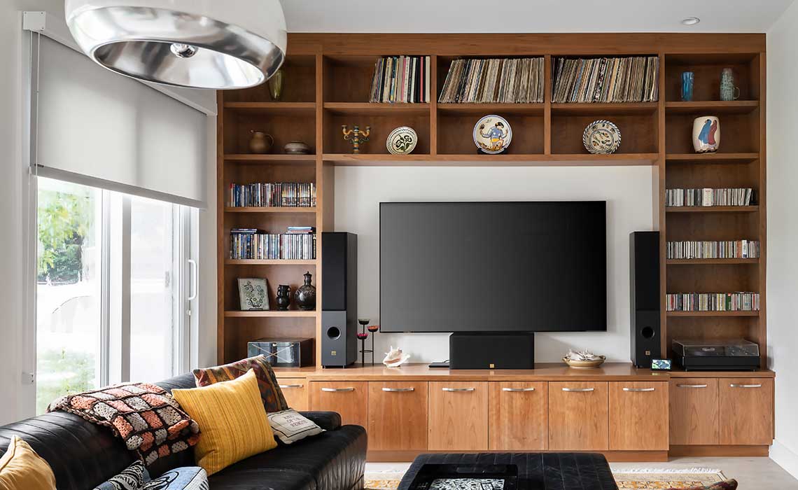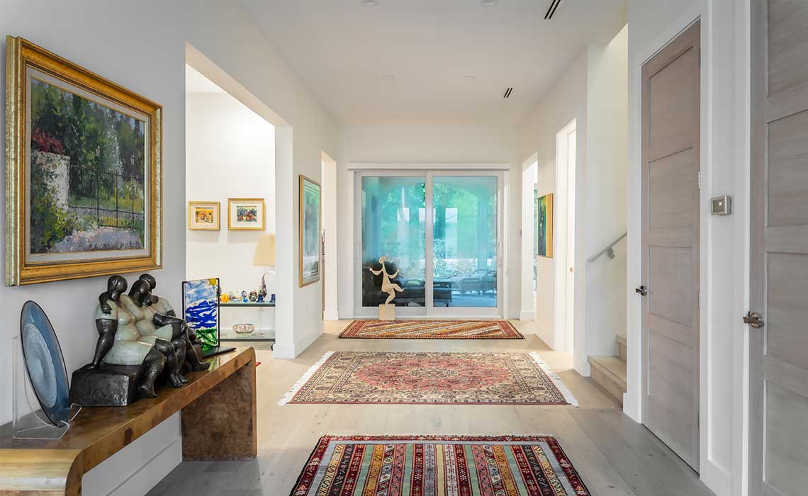 The great hall feeds into a guest suite, media room, living room, dining room and the kitchen. A walk-in wine room off the dining room and a powder room completes the ground floor.