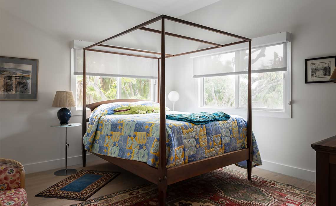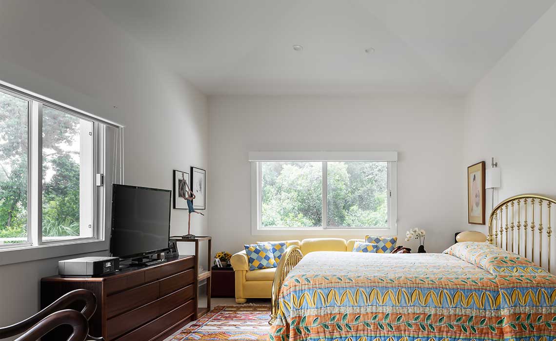 The project was build out of structural steel panels and is hyper-insulated with a metal roof to further improve energy performance through reflection. It is fully energy independent with PV panels, and all native plans and a water filtration system add to the sustainable features of the home.